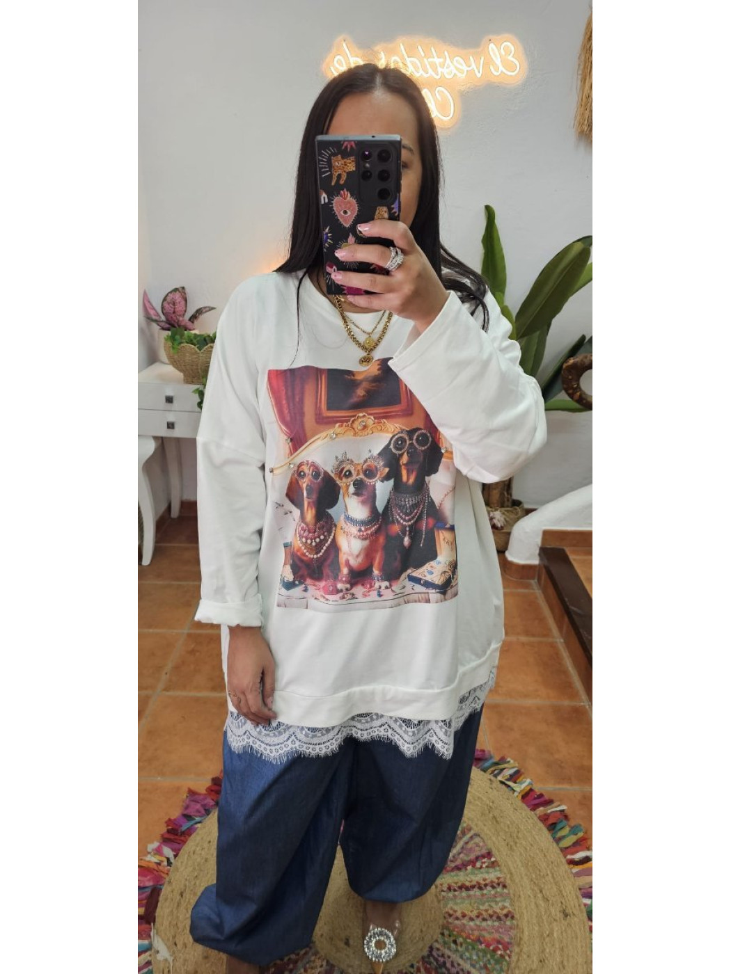 Sudadera perrito joya puntilla