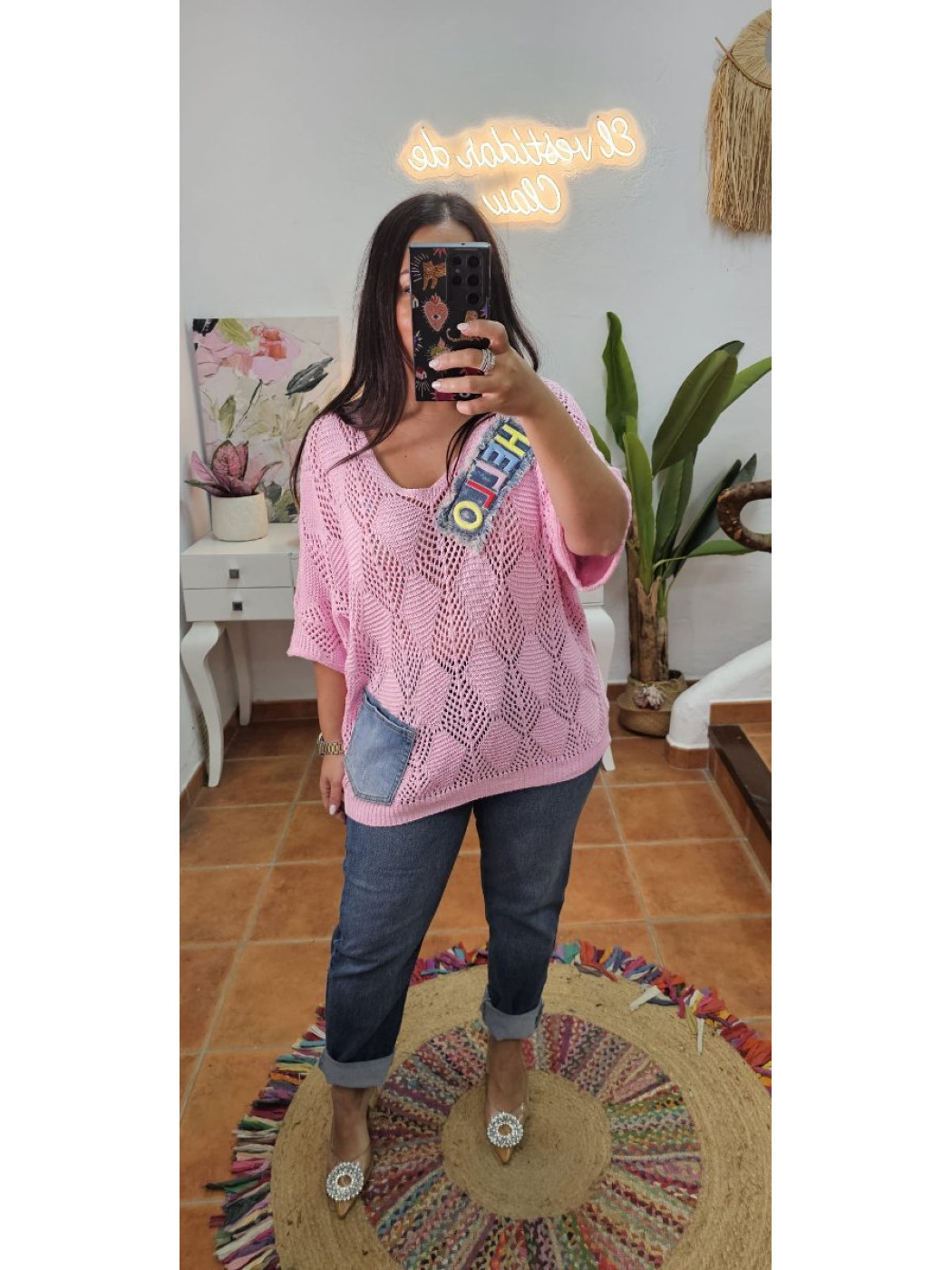 Jersey calado denim rosa